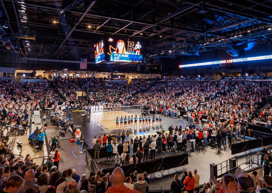 The restaurant features 36 beer taps with a mix of local, domestic and imported options, more than 100 televisions and a 136-inch LED screen positioned above a stage designed for live music. A covered patio and a dedicated carryout area are also part of the layout, allowing guests to pick up food separately from dine-in traffic.