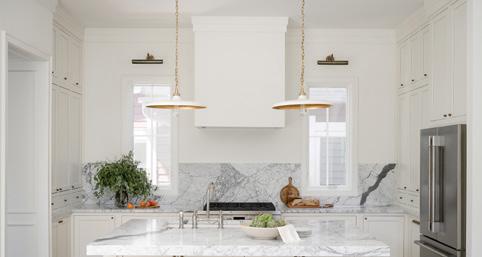 • Replaced dated pendant lighting with bold brass fixtures for a modern statement.