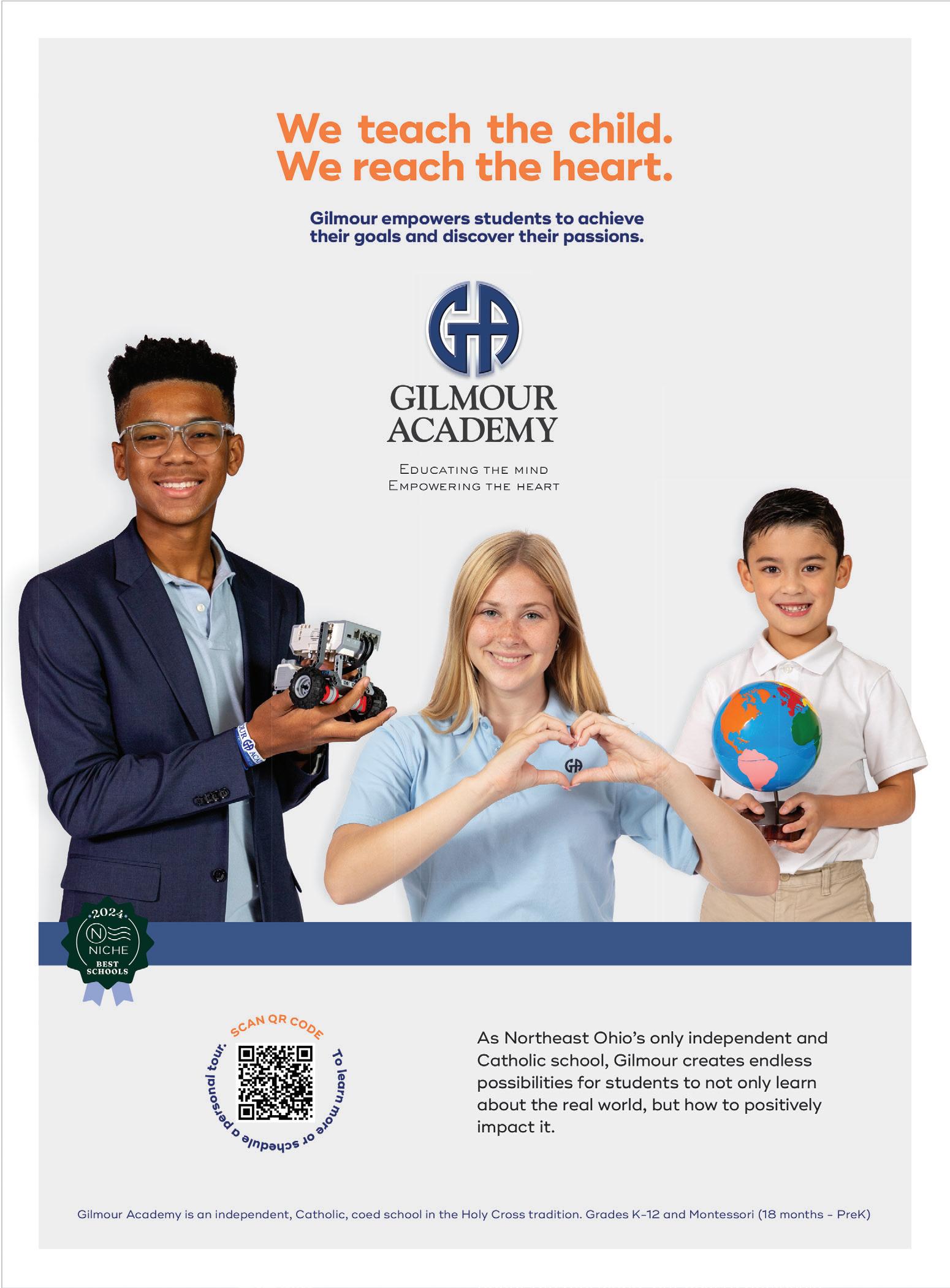 Gilmour Academy is home to students from 18 months to 18 years and our mission is to educate the mind and empower the heart of every student. Founded in 1946 by the Brothers of Holy Cross, Gilmour Academy encourages students of all faiths to ask tough questions, think critically and grow spiritually. Following the independent school model, Gilmour’s small class sizes and variety of real-world learning opportunities provide a personalized education for every student. Through a rigorous academic program, religious studies, social service and an emphasis on leadership, Gilmour educates the whole person.