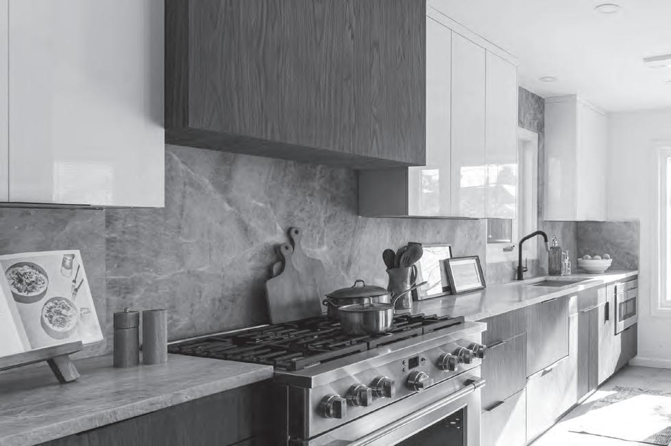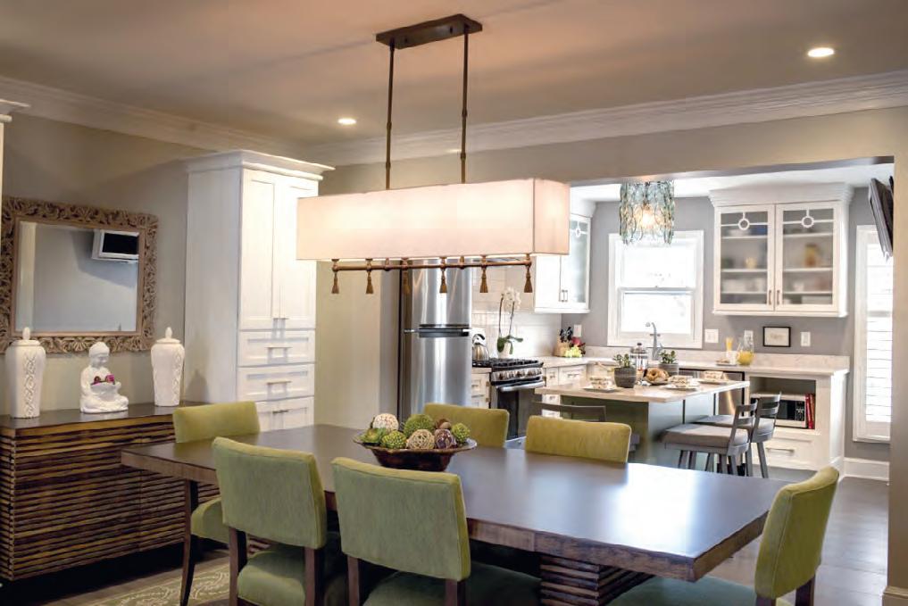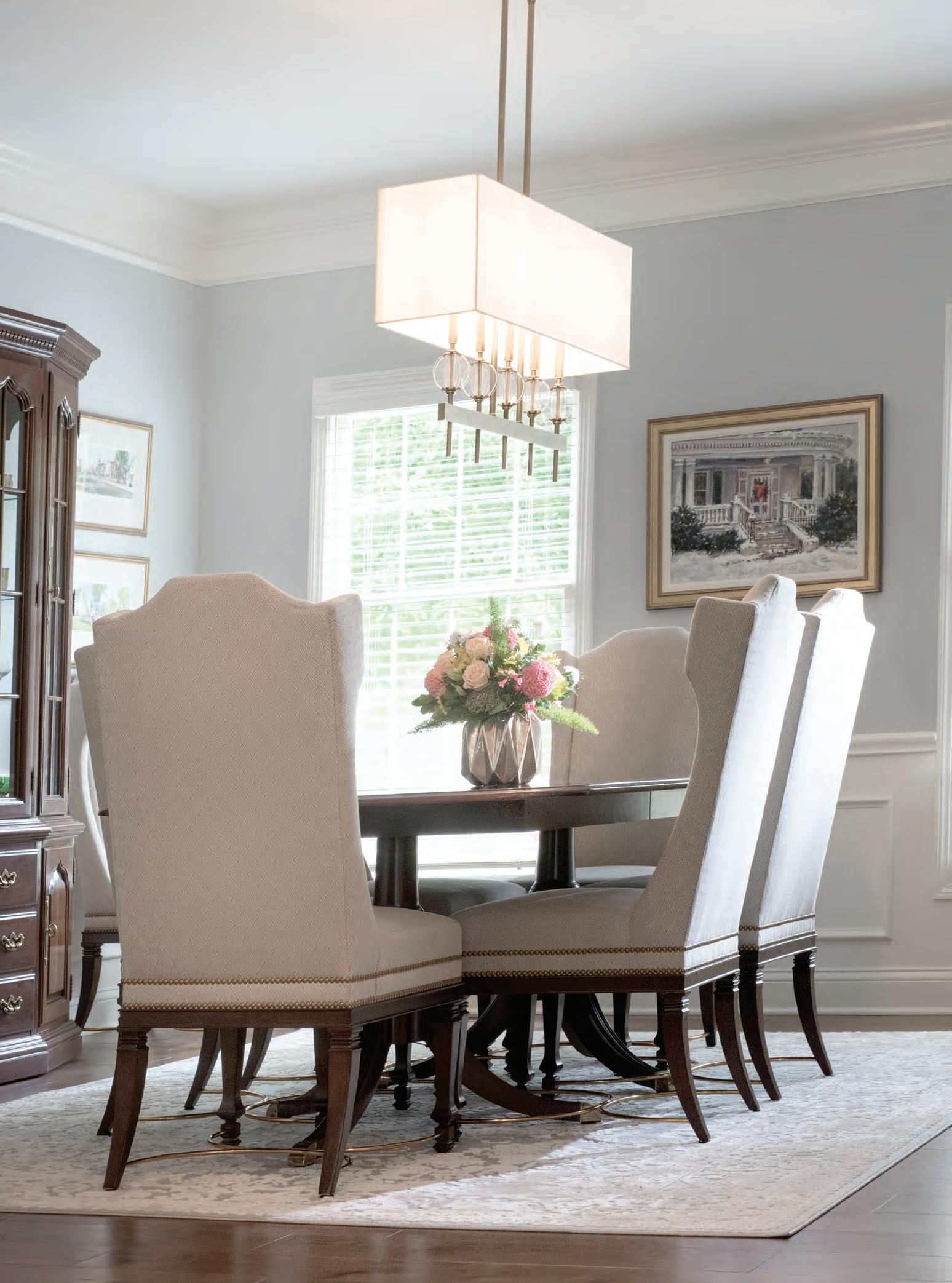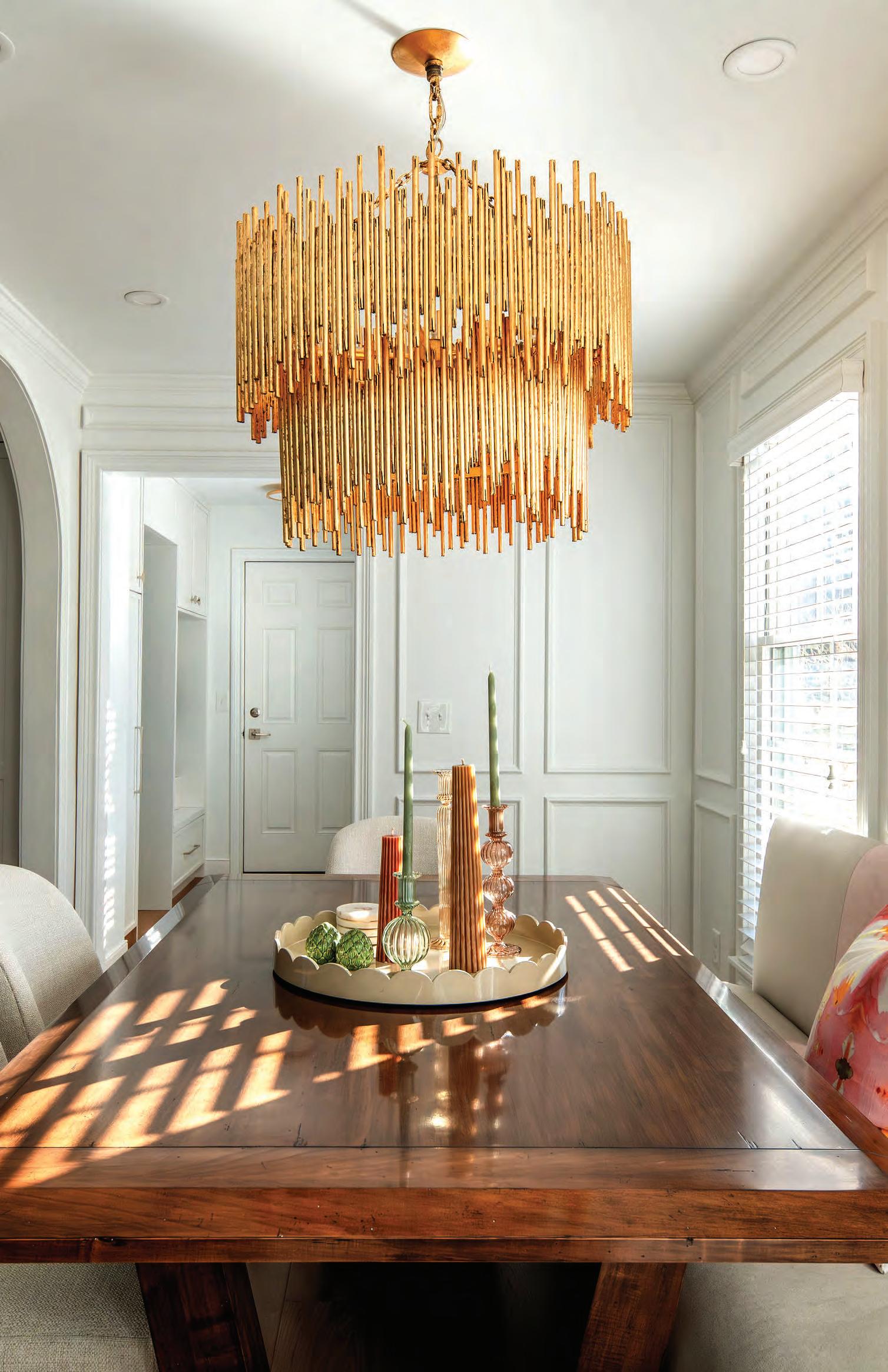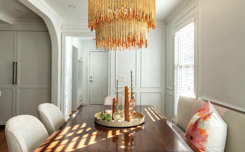 Ingrid Porter (Ingrid Porter Interiors). Custom chairs, banquette, and dining table are from Chaddock. The chandelier by Arteriors mimics bamboo but is made from metal. The cabinets are from Lane 17. Accessories from Hedges. Photograph by Stephanie Penick Photography. Read more about home design for spring 2024 in Section B.