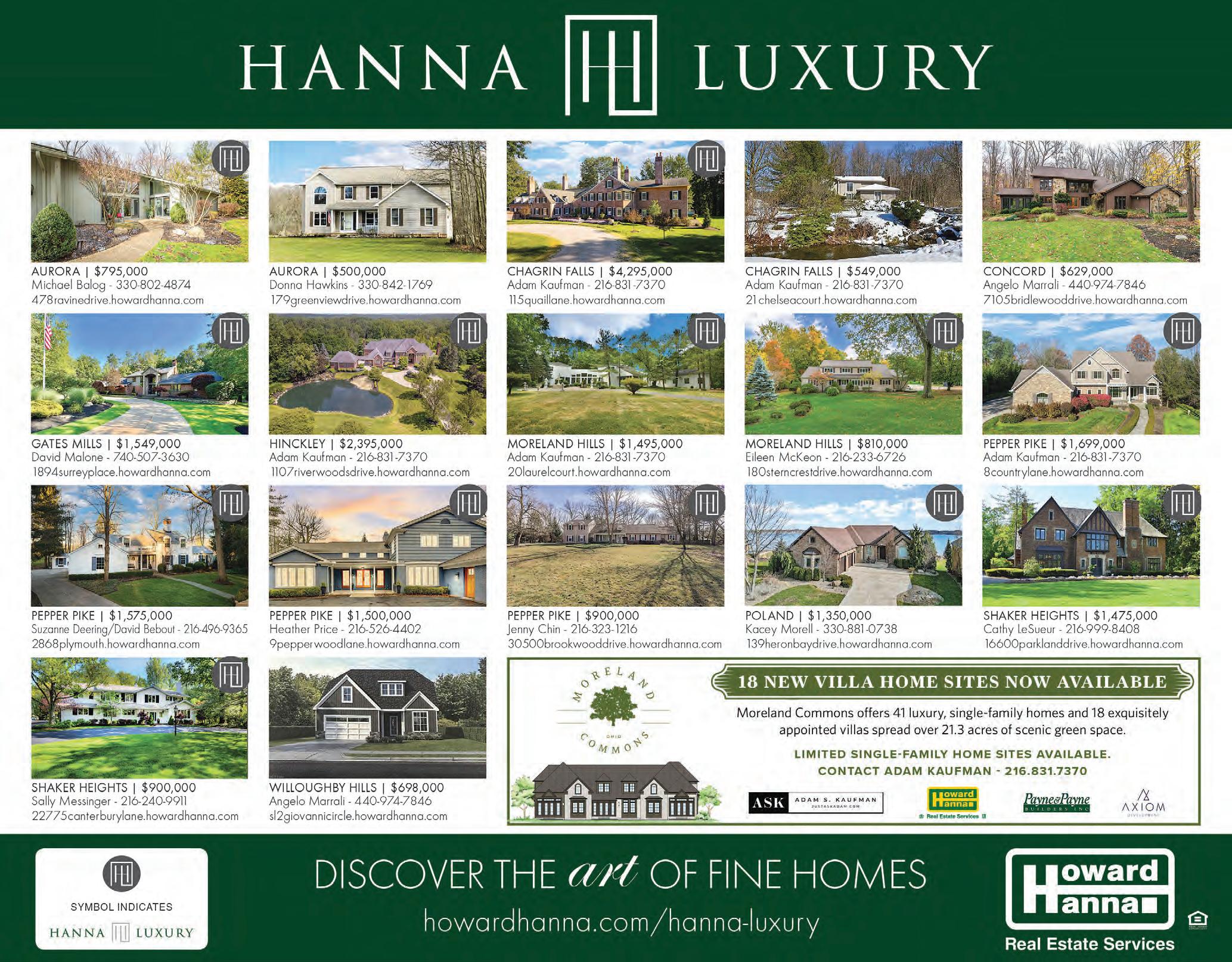 A2 CURRENTS March 21, 2024 currentsneo.com DM DAVID MALONE LUXURY HOMES EXCELLENCEINREALESTATE 74O • 5O7•363O F OR M ORE I NFO > WWW. DAVIDMALONE .HO WARDHANNA . COM FANTASTIC ENTERTAINING SPACES INSIDE & OUT! 1894 SURREY PLACEIN GATES MILLS • FeaturesSpaciousRooms&High-EndFinishesThroughout! BeautifulFirstFloorMaster+3Add’lBeds/6Baths/5,425sqft./HeatedPool/FinishedLowerLevel/3+CarGarage/3.3Acres 3LUXURY PROPERTIES ALREADY UNDER CONTRACT THIS YEAR! GREAT OUTDOOR ENTERTAINING HEATEDPOOL, TONSOFSEATING, 2 FIREPITS, GRILL, COYPOND, & ACOVEREDSEATINGAREAWFIREPLACE ORANGE Listed@ $1.725M WAITEHILL Listed@ $1.75M KIRTLAND Listed@ $2.150M
