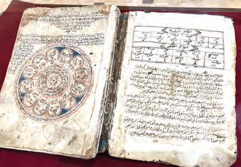 Samaritan men gather for prayer in their synagogue located in Kfar Luza in the West Bank of Israel. Samaritans are believed to be the smallest religious group in the world. This ancient religious book on display at the Samaritan Museum is written in ancient Hebrew. Photographs courtesy of the Samaritan Museum