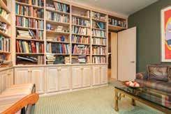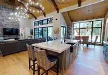 or den with a walkout to the deck and built-in bookshelves up to the ceiling. Just past this room is the bedroom wing. This is one-story living at its best. The owner’s suite can be closed off for privacy with its sitting area, bedroom, glamour bath with heated floors, private shower and loos, plus quartz vanities.