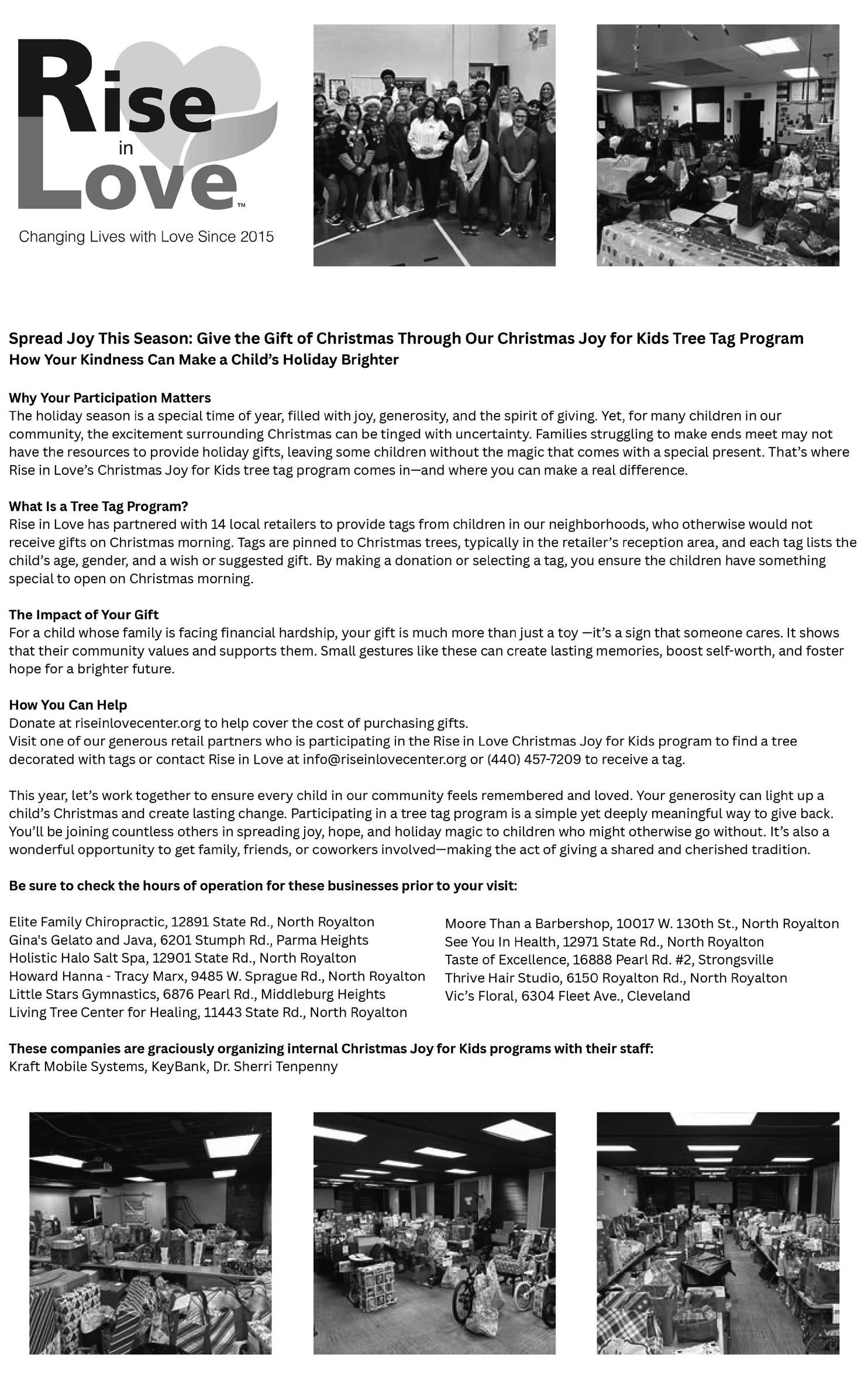 Thursday, December 4...16th Annual Tree Lighting Ceremony, to benefit May Dugan Center, 5:30 to 7:30 p.m. at the Center, 4115 Bridge Avenue. Enjoy a fun family evening with Santa, The Grinch, local choirs, the Urban Community School and the May Dugan Seniors. Supporting the May Dugan Center’s mission of “enriching lives and strengthening communities through comprehensive support services.” Sponsorships are available; for more information, email Patty Kaplan, pkaplan@maydugancenter.org, or call 216-631-5800, ext. 125.