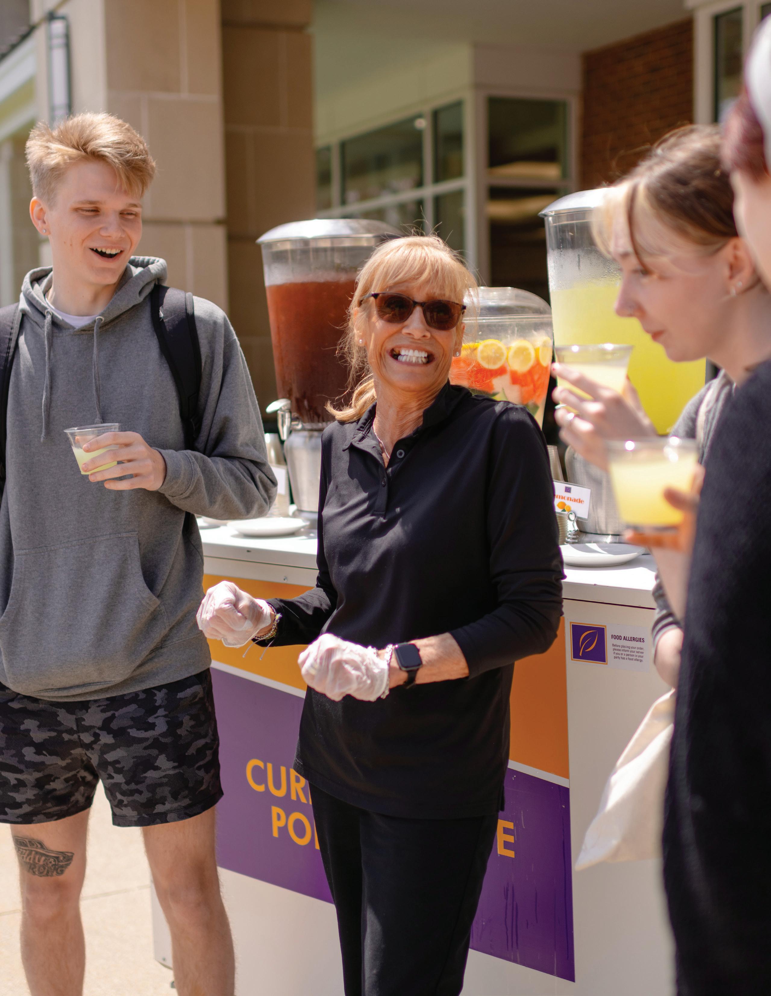 You’ll feel the warmth and support of our community as soon as you step onto campus. People like Julie “Jools” Pemberton embody the essence of the Curry spirit. She’s a beloved member of our community and a familiar face at dining services for 15+ years. Whether she’s greeting you by name, cheering you on at sporting events, or sharing her popular fried dough recipe, Jools’s genuine kindness makes every student feel seen and valued.