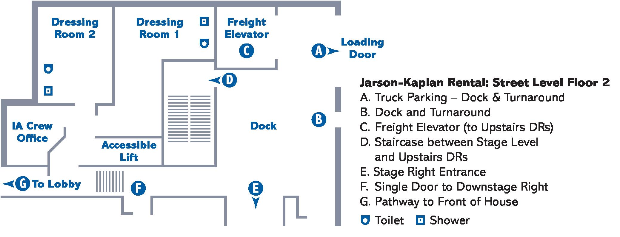 • Administration and Stage Door, enter through labeled doors on 7th Street
