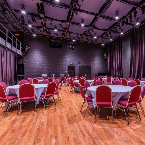 The Rehearsal Hall is approximately 50’x38’ (1900 sf), has a white oak floor, a mirrored wall with traveling curtain, and access to restrooms and a water fountain. The space is very flexible and often used for performing arts rehearsals, auditions, and catered events.