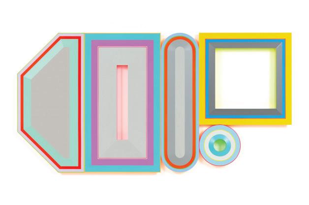 Probing the pharmaceutical promise of costly “cures”, these sculptural wall reliefs that combine glowing fluorescent and smooth matte forms, with each geometric fragment representing a medicinal dose.