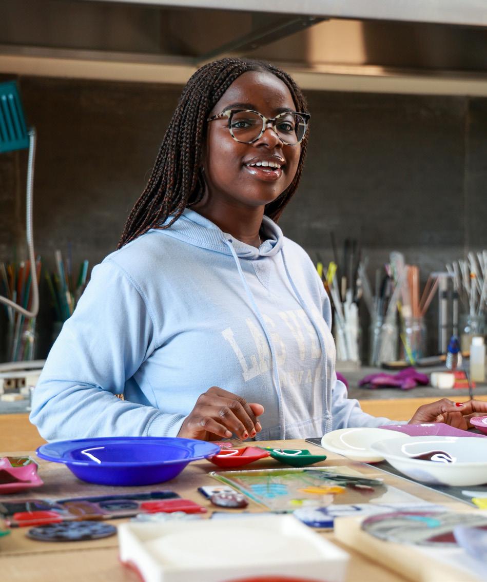 In this introductory course, students learn the processes of both fused and stained glass, including glass cutting, grinding, kiln fusing, slumping and draping, copper foiling, and soldering. Project choices range from building stained glass suncatchers and panels, to fused glass jewelry, ornaments, dishes, and bowls. As students’ skills develop, they are encouraged to explore a variety of techniques and create their own unique designs. Offered winter season.