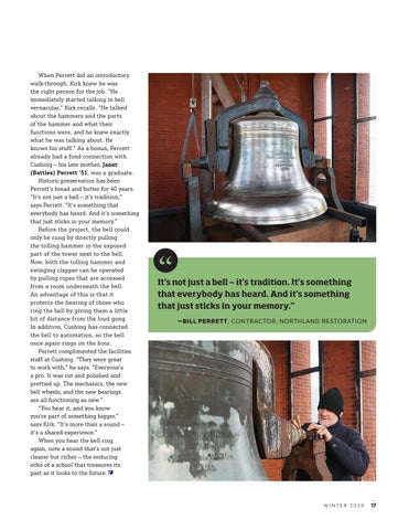 It’s not just a bell — it’s tradition. It’s something that everybody has heard. And it’s something that just sticks in your memory.” —BILL PERRETT, CONTRACTOR, NORTHLAND RESTORATION
