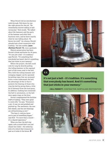 project-based learning initiatives; in the thoughtful restoration of the bell in the Main Building; in our celebration of one hundred years of Cushing hockey; and in the strength of alumni leading our board and serving on our alumni council.