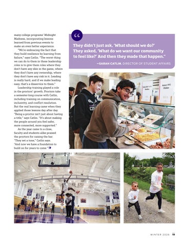project-based learning initiatives; in the thoughtful restoration of the bell in the Main Building; in our celebration of one hundred years of Cushing hockey; and in the strength of alumni leading our board and serving on our alumni council.