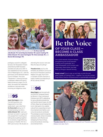 Join a bold network of alumni leaders strengthening the bonds between Cushing and its graduates. As a Class Ambassador, you’ll connect with classmates, share stories, and help keep our Penguin network thriving. Ready to lead? Scan to sign up and help us write the next great chapter of Cushing’s story — together. You can also contact Greg Pollard, Director of Advancement, at grpollard@cushing.org.