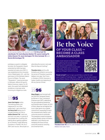 Join a bold network of alumni leaders strengthening the bonds between Cushing and its graduates. As a Class Ambassador, you’ll connect with classmates, share stories, and help keep our Penguin network thriving.