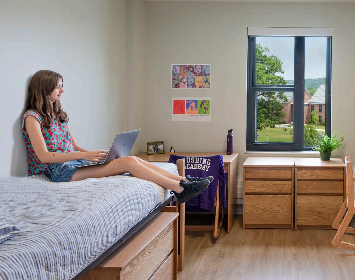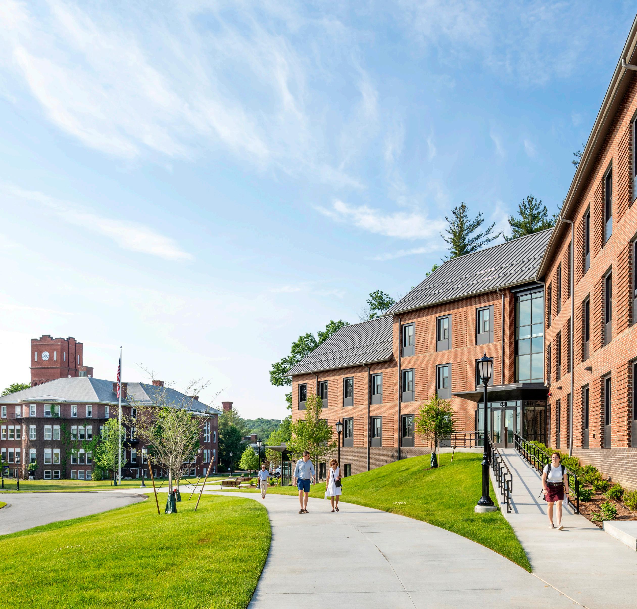 Carlisle Hall (for girls) and Hancock Hall (for boys) opened in 2021, replacing the nowdemolished Cooke Hall. Each dorm houses 30 students in 15 double rooms, along with two faculty apartments, a student lounge and work spaces — all conveniently located in the center of campus adjacent to Drew Common and overlooking Quimby Field.