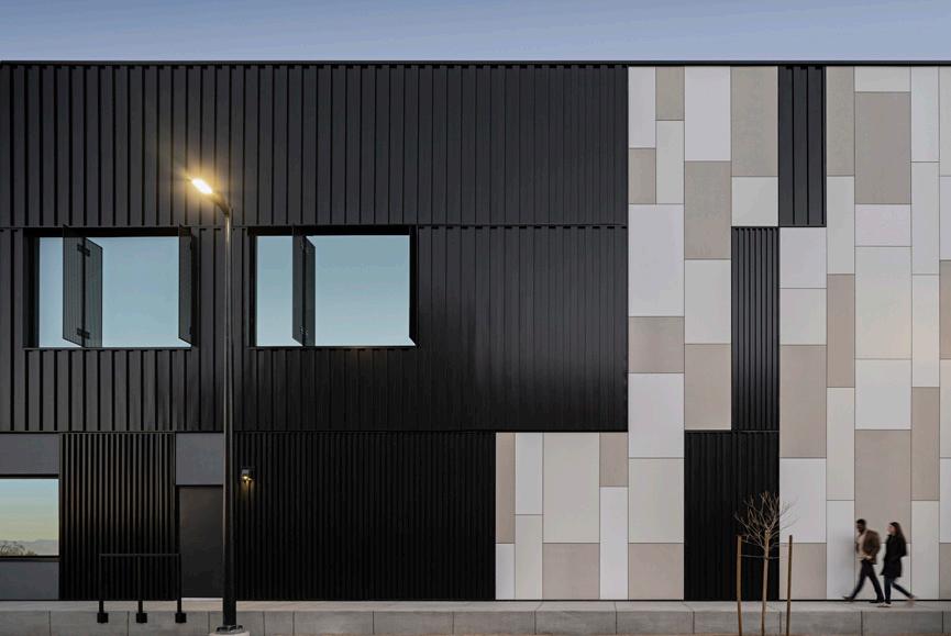 “I felt strongly that the geology of the area would also lead us to the cladding solution for the exterior of the building,” Hallowell said. “Working with our geology researcher, we decided to use gneiss rock layers as our inspiration. These metamorphic rocks are layered, creating a banded appearance with alternating light and dark mineral bands.”