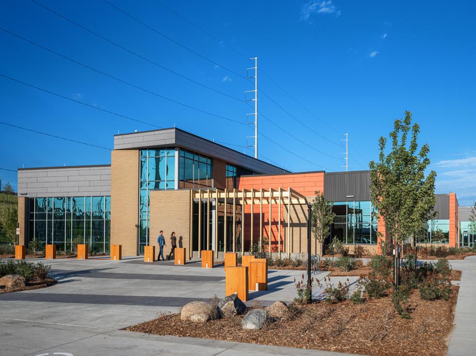 Because the building is in a high seismic category, the design also included necessary structural elements to ensure long-term safety and stability. “We utilized buckling-restrained braced frames (or BRBFs) to provide the lateral resistance and energy dissipation needed,” said Lindsay Watters, the lead structural engineer for the project. “Beyond their structural performance, the BRBFs also became a defining architectural feature — their exposed clean lines contribute to the visual identity of the space while showcasing the beauty of seismic-resilient design.”