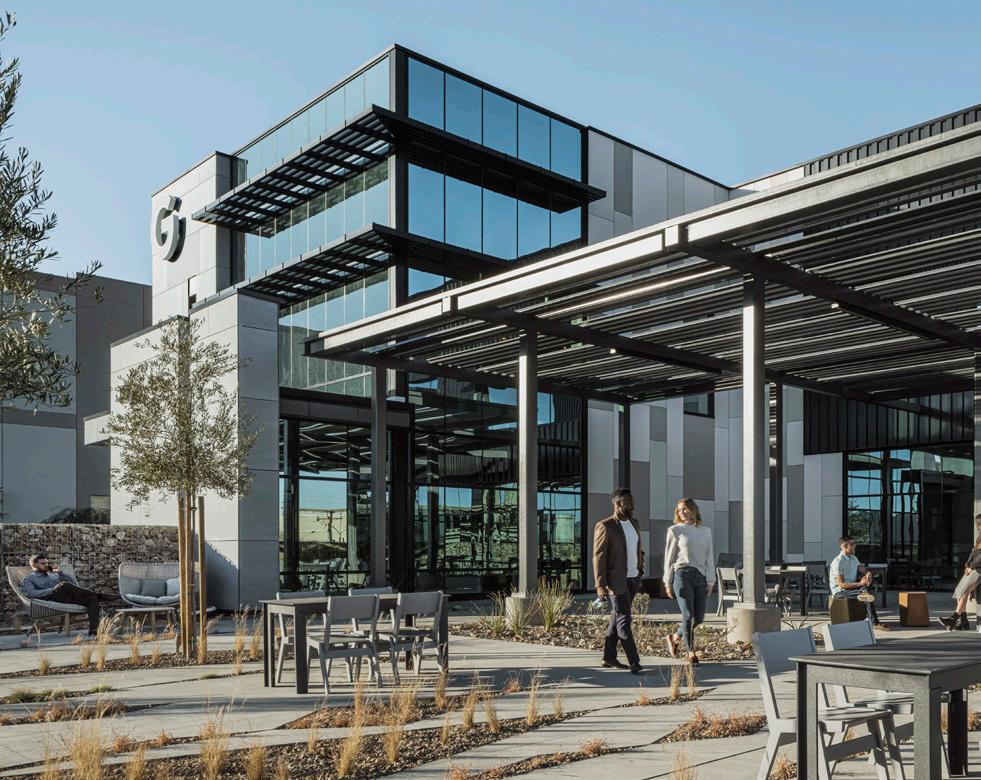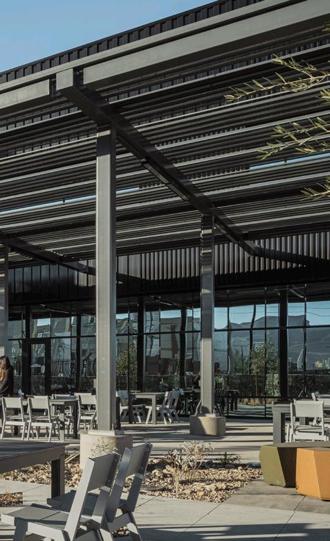 A big priority of the project was to maximize an outdoor courtyard for that critical connection to nature and take full advantage of daylight, no matter the weather or season. To achieve this, the design team leveraged floor-to-ceiling glass walls in the café adjacent to the courtyard and added a robust outdoor canopy to provide shading from the desert sun.
