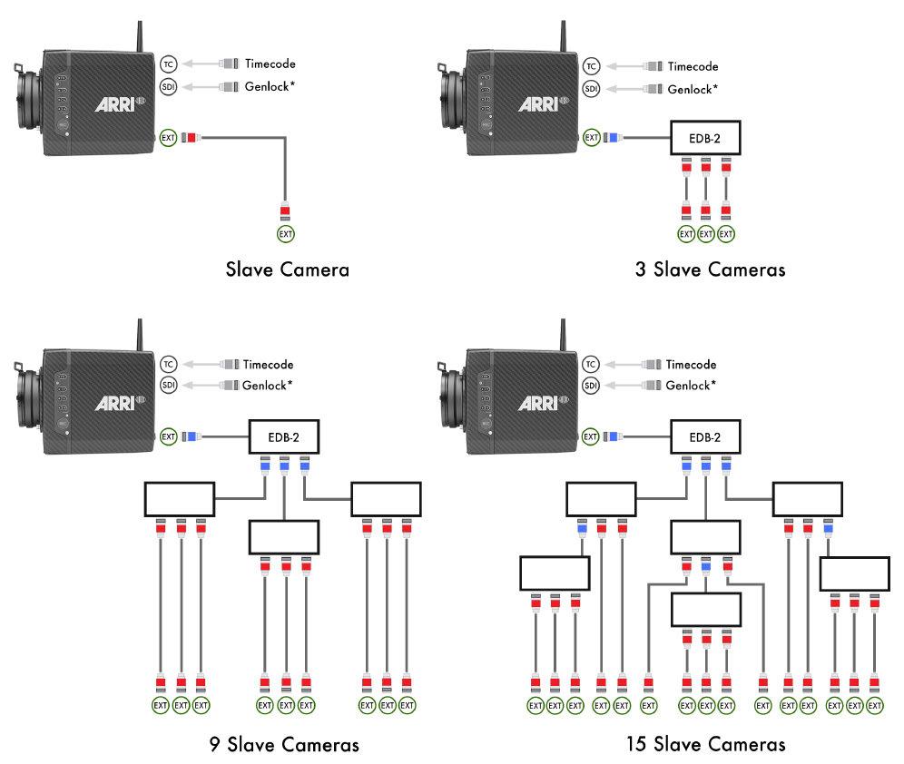 Through a hardware modification, SDI 2 can be reconfigured to a SYNC IN connector for analog genlock signals (Black burst, Trilevel sync). Please contact an ARRI camera service center for more information.