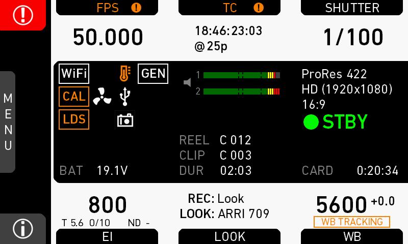 Note: The camera has a TC buffer to keep a synced external TC for up to three minutes while camera power is disconnected.