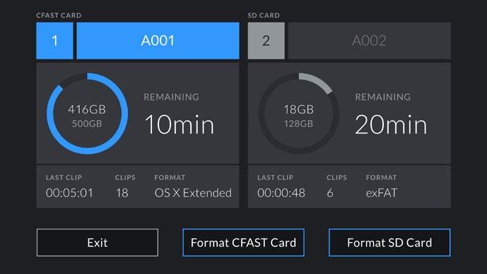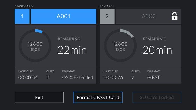 Your Blackmagic Pocket Cinema Camera uses standard SD cards, faster UHS-II SD cards or CFast 2.0 cards to record video.