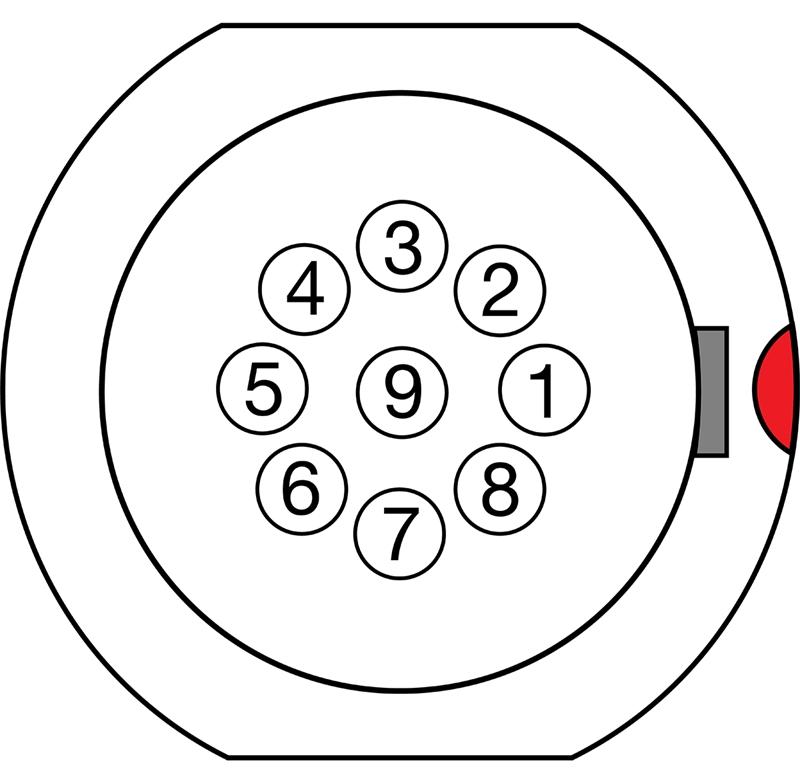 NOTE: The required mating connector is 9-Pin 0L Straight Plug Connector (ODU, part# SX0L0X-P09MCC0-0001).