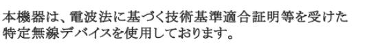 Thisequipmentcontainsspecifiedradioequipmentthathasbeen certifiedtotheTechnicalRegulationConformityCertificationunderthe RadioLaw.