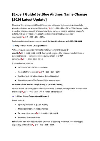 JetBlue’s name-change policy is designed to help travelers correct mistakes while maintaining security and compliance ||+1⇢866⇢284⇢3014. Whether you need a quick spelling fix or a full legal update, the process is straightforward when you know the rules.