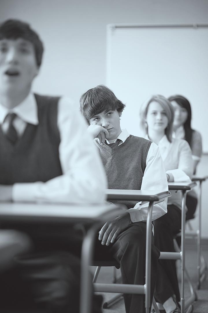 This teacher has such scary teeth, they look just like a shark’s; His eyes gleam in the sunlight like a pair of purple sparks. His voice is just as booming as the roar from some big gun; He can imitate a thunderstorm for a gruesome bit of fun. And now Billy who was silly almost every other day Does his tables, writes his spellings, hides his comic book away. Every lesson lasts a lifetime ... with our noses to each page, We imagine bars on windows and the classroom seems a cage.