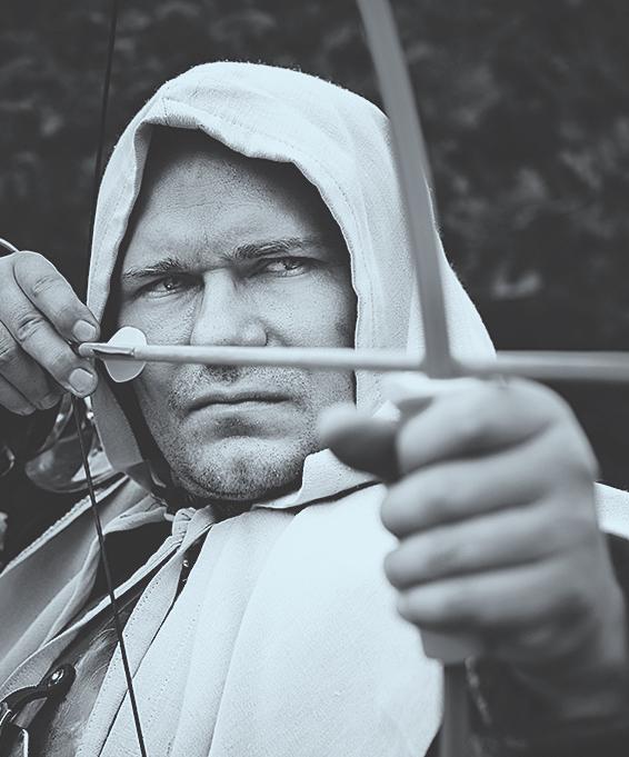 He was a middle-sized man, of massive build. His shaven face was as brown as a hazel-nut, tanned and dried by the weather, with harsh, well-marked features, which were not improved by a long white scar which stretched from the corner of his left nostril to the angle of the jaw. His eyes were bright and searching, with something of menace and of authority in their quick glitter, and his mouth was firm-set and hard. A straight sword by his side and a painted long-bow jutting over his shoulder proclaimed his profession, while his scarred chainmail and his dinted steel cap showed that he was even now fresh from the wars.