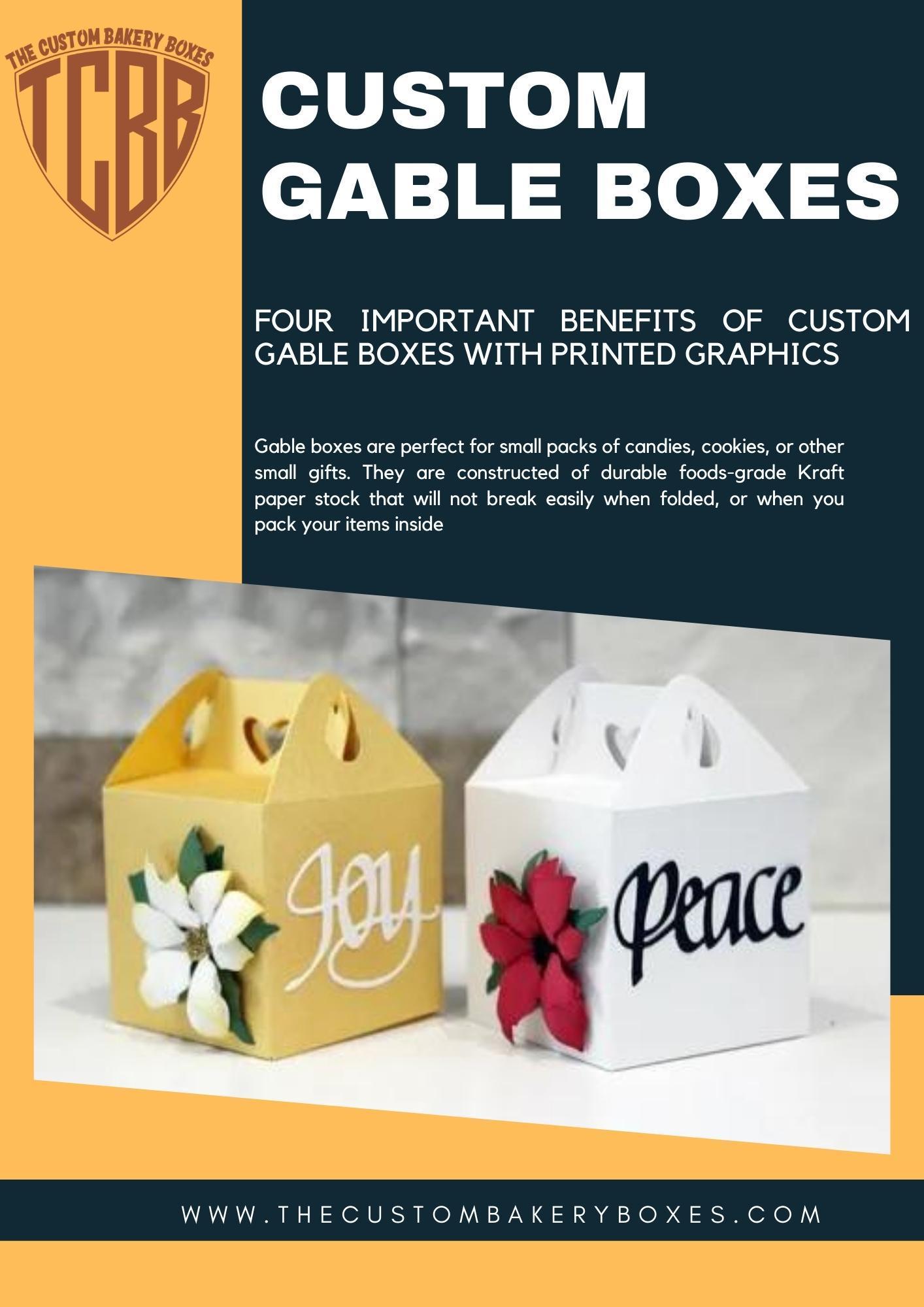 Gable boxes are perfect for small packs of candies, cookies, or other small gifts. They are constructed of durable foods-grade Kraft paper stock that will not break easily when folded, or when you pack your items inside. Be sure that the material you use for the production of Gable Boxes Bulk can withstand transportation damage better, which will reduce the amount you'll have to pay for returning and replacing items.