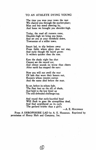 The poem “To an Athlete Dying Young” by Alfred