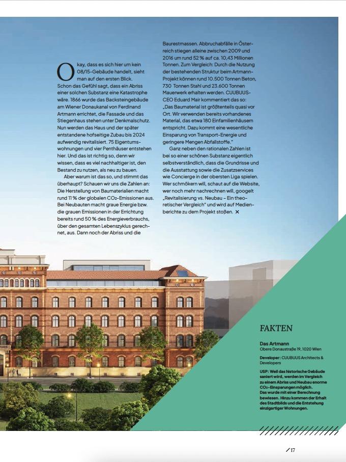 Medium: Der Standard –Future Buildings Platzierung: Nachhaltigkeit -Aufmachergeschichte