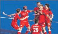 ● Marske United players celebrating Jason Kennedy’s goal vs Atherton Collieries. Pictures: by Emma Hathaway