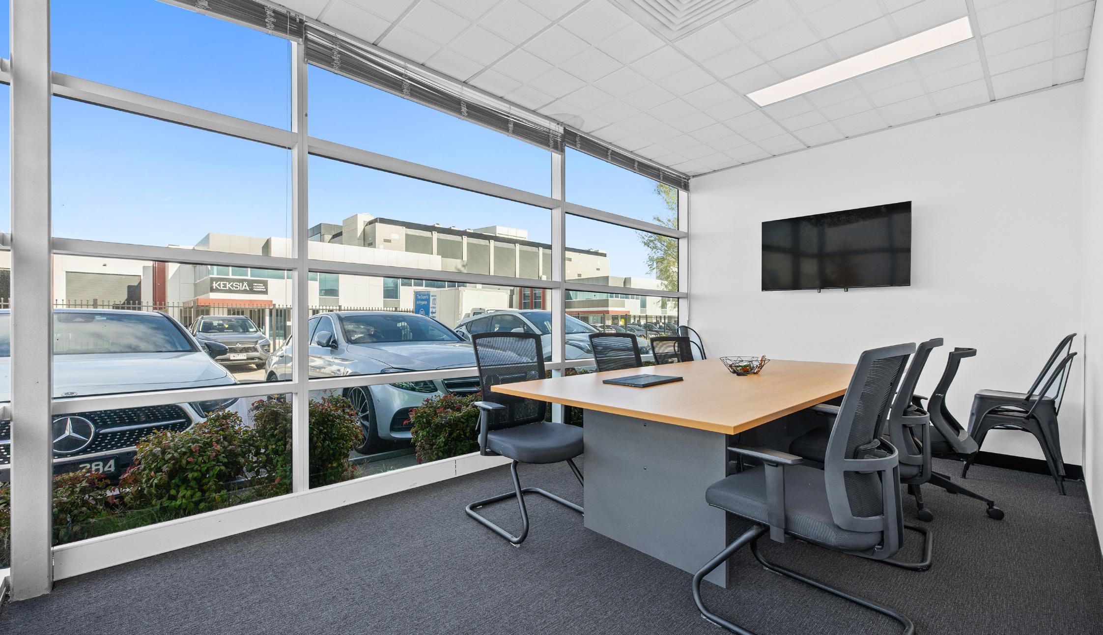 A bright, glass-partitioned boardroom captures plenty of natural light through large windows, creating a refreshing atmosphere that promotes productivity. The entire space is fully carpeted and complemented by ducted heating and cooling to provide comfort all year round. High-quality finishes, suspended ceilings and recessed lighting contribute to the property’s polished and professional appeal.