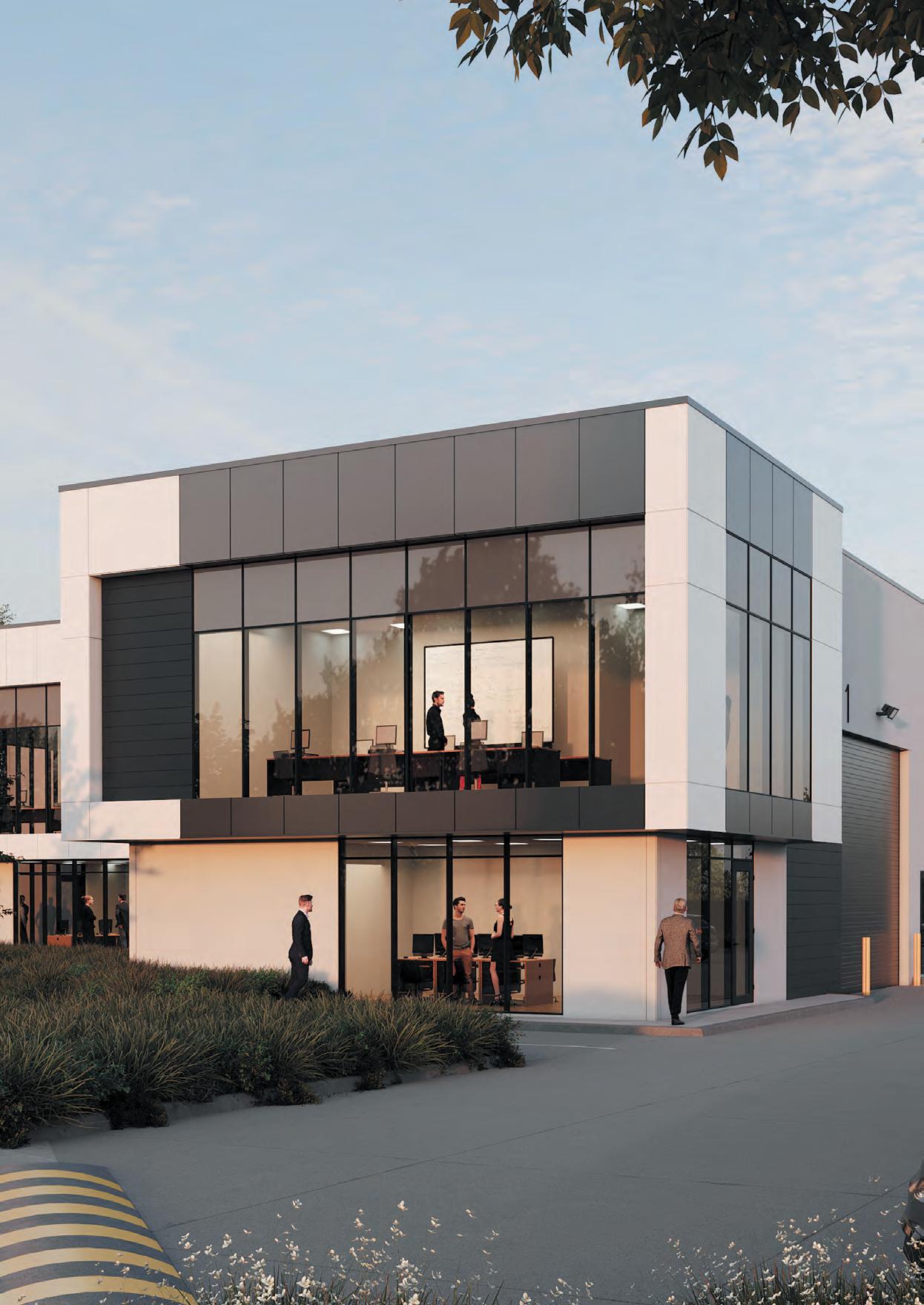 Dunlop Central offers 24 office warehouses ranging in size from 130 m² to 346 m², each featuring designated private car space, solar panels, mezzanine offices, open mezzanine floors, with limited yard spaces available, kitchenette and bathroom facilities, all accessed through a secure, private gated entry.