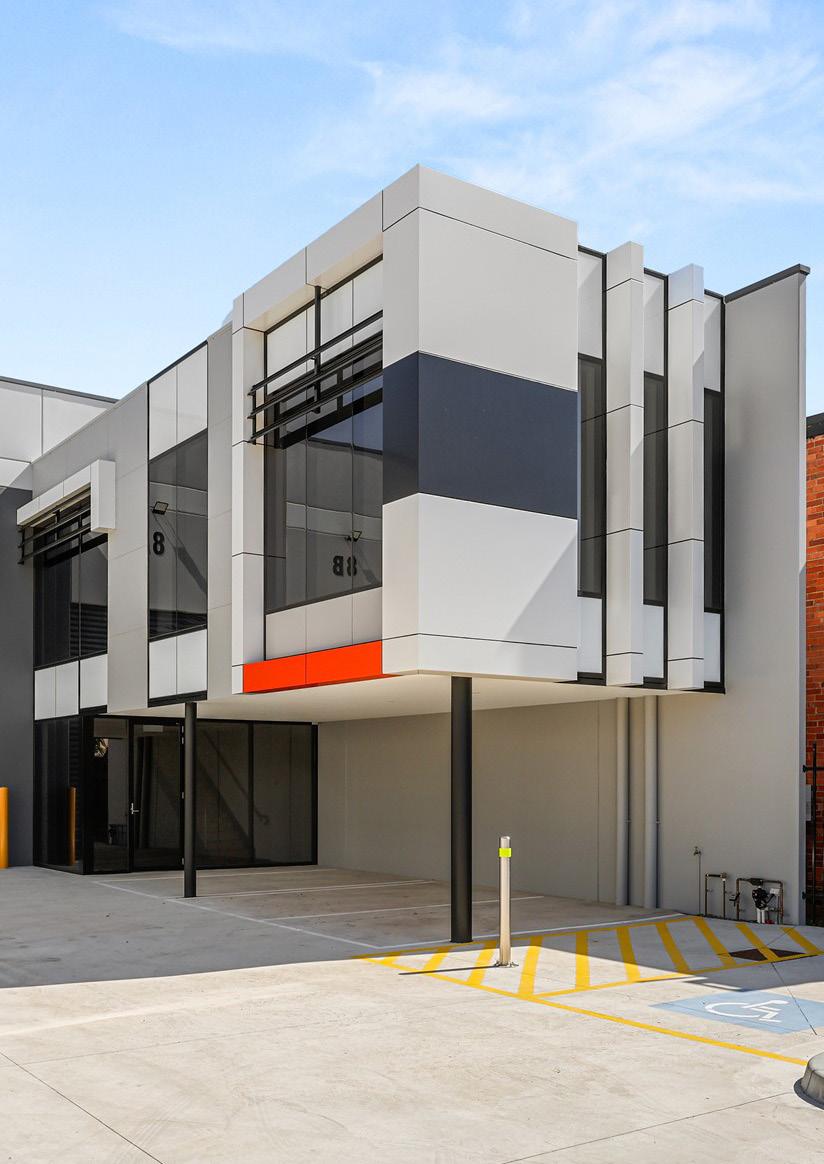 This brand new architecturally designed o ce/ warehouse of 332 sqm* with outstanding warehouse height of approximately 8.8 metres* is well presented, fully air-conditioned and includes carpeted o ces that will suit both owner occupiers and astute investors.