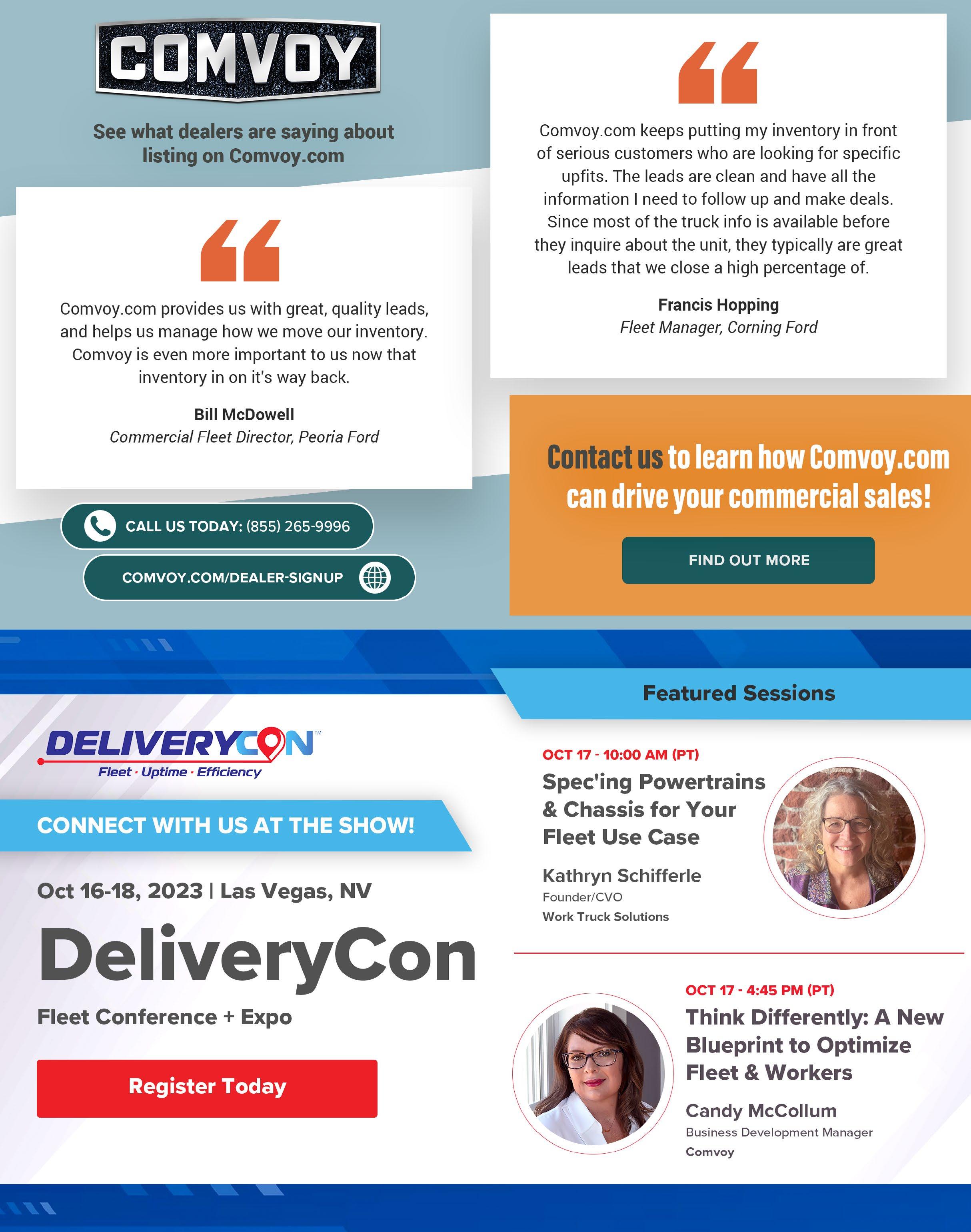 Work Truck Solutions is a proud Platinum Founding Sponsor DeliveryCon is designed to help delivery fleets of all types – from package and last-mile to middle-mile and regional deliveries - discover new efficiencies, tools, and technologies to keep fleets on the road.