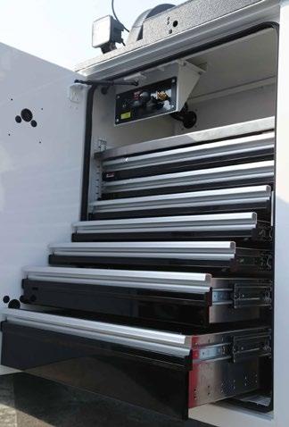 In addition to increasing available payload, the side pack compartments are designed to enable easy organization. (After all, organization is paramount for efficiency.) So, users will have the option to include CTech extreme-duty aluminum mechanics 7-drawer sets and bolt bins (both standard options) in the compartments to ensure that all tools and components have a place, or can choose other organizational equipment to add. But either way, users can expect a reduction in clutter and search time.