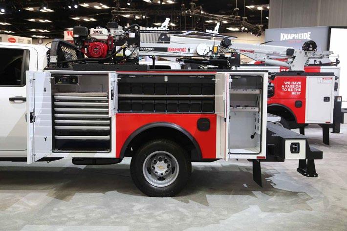 THE AKMS16 Knapheide showcased its Aluminum KMS16-09 prototype in Indianapolis, Ind., at the National Truck Equipment Association’s Work Truck Week Expo in March. The AKMS16 combines steel and aluminum: The crane compartment and understructure are crafted using steel to provide strength, and with its aluminum side packs, users gain an additional 530 lb. of payload capacity (compared to Knapheide’s currentlightest mechanics truck option – the standard KMS16).