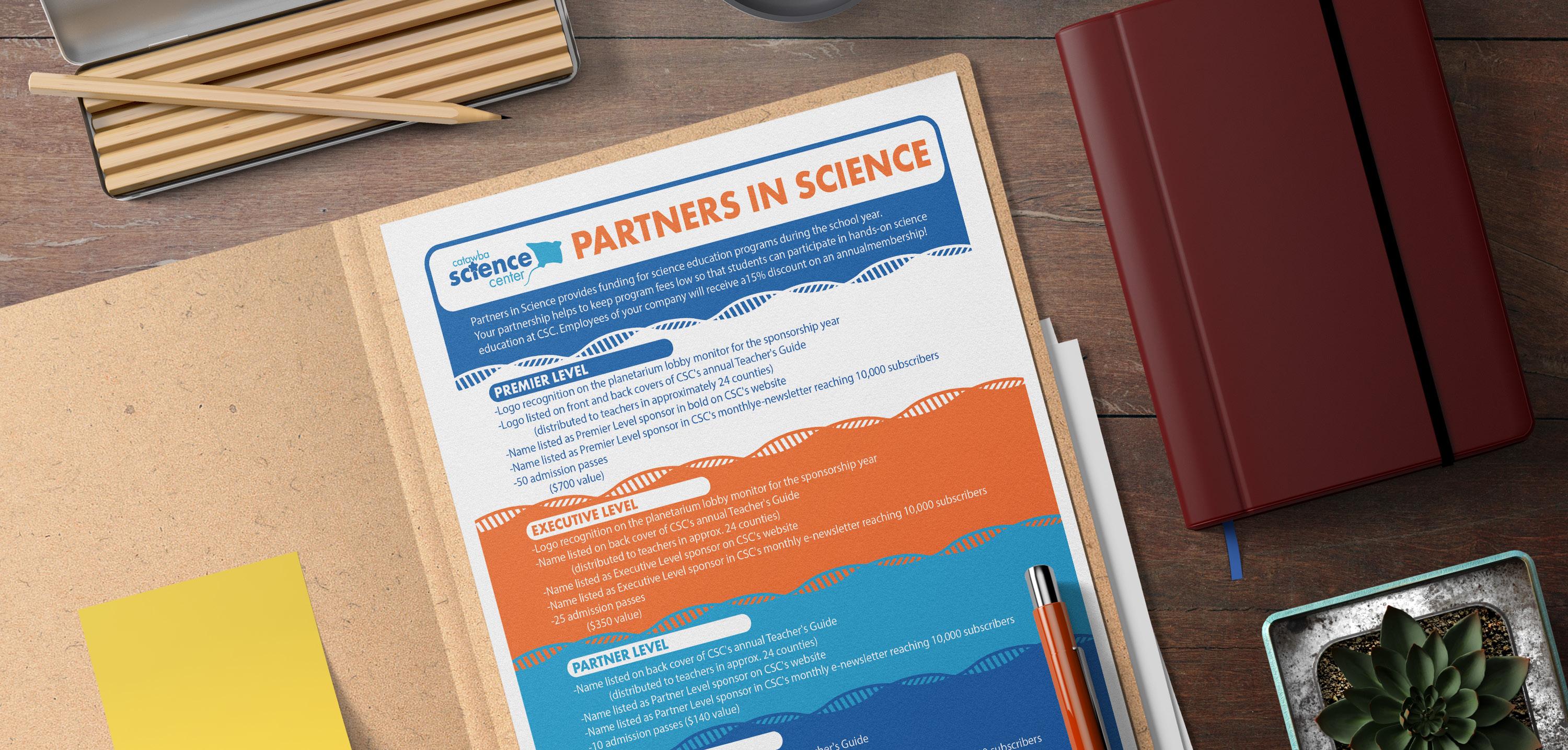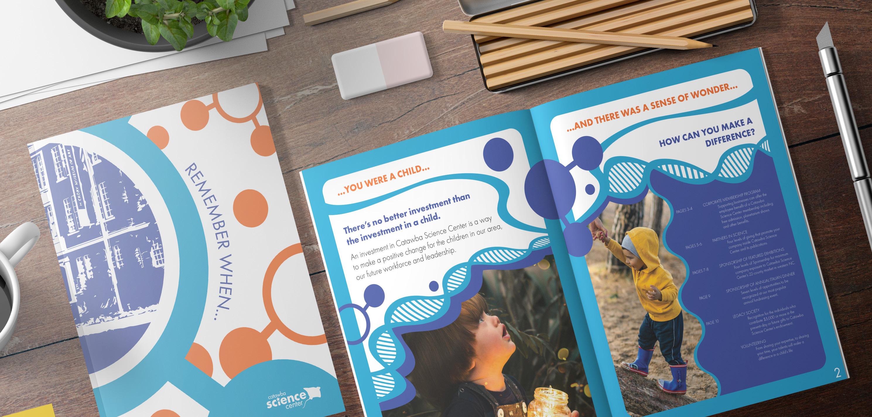 Redesign the Catawba Valley Science Center booklet, sponsor sheets, and the admission card in collaboration with the Elemental Creative agency.