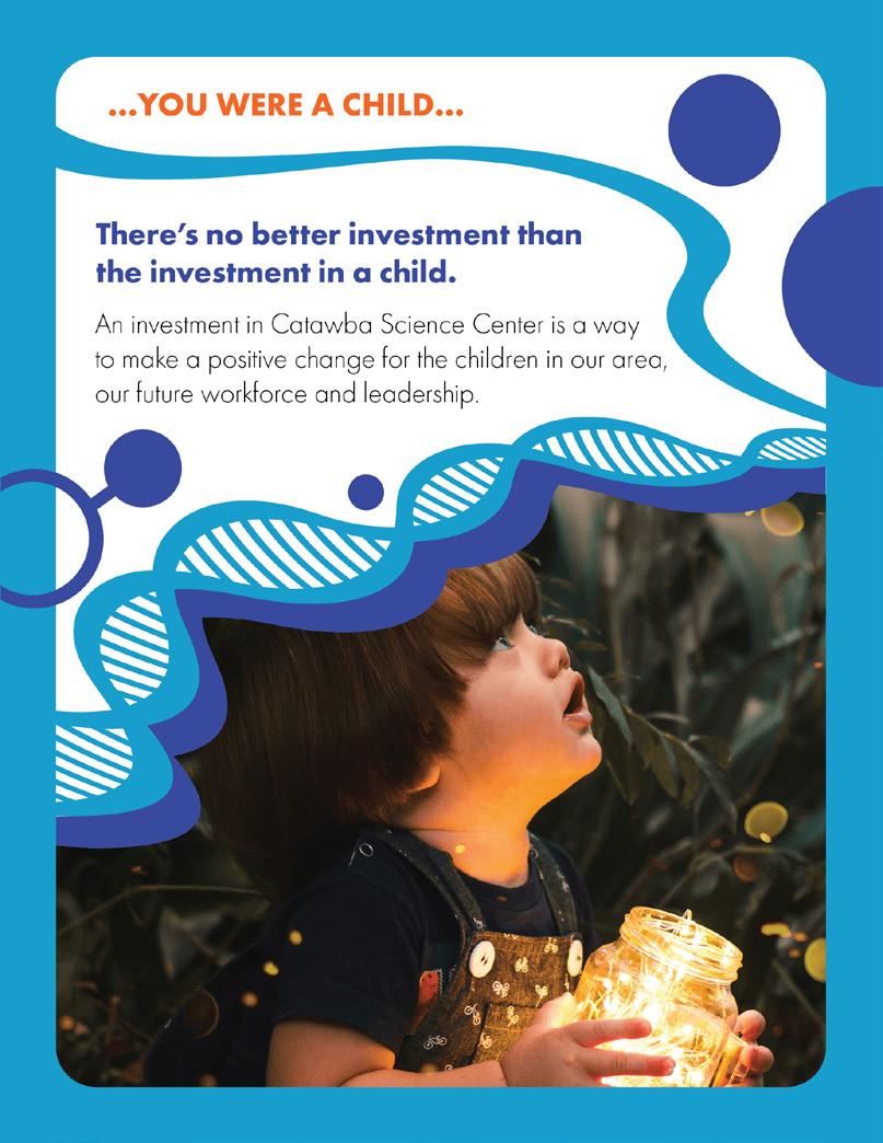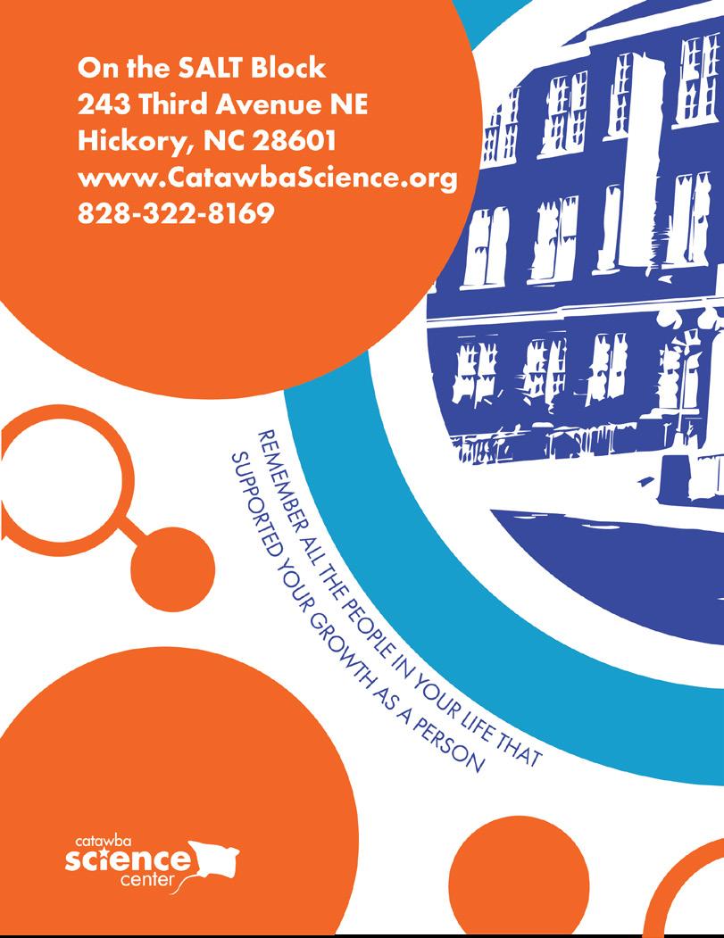 The redesign for Catawba Valley Science Center’s booklet, sponsor sheets, and admission card aims to capture the essence of the center’s vibrant and engaging atmosphere. With a focus on fostering children’s curiosity and love for science, the new designs infuse a playful and exciting feel using the center’s signature colors of bright orange, light blue, and dark blue. These colors not only create a cohesive visual identity across all materials, but also evoke a sense of energy and enthusiasm, perfectly aligning with the Science Center’s mission. The main icons featured in the redesigns, including a DNA strand and a water molecule, serve as visual representations of scientific exploration and discovery, further reinforcing the center’s educational objectives.