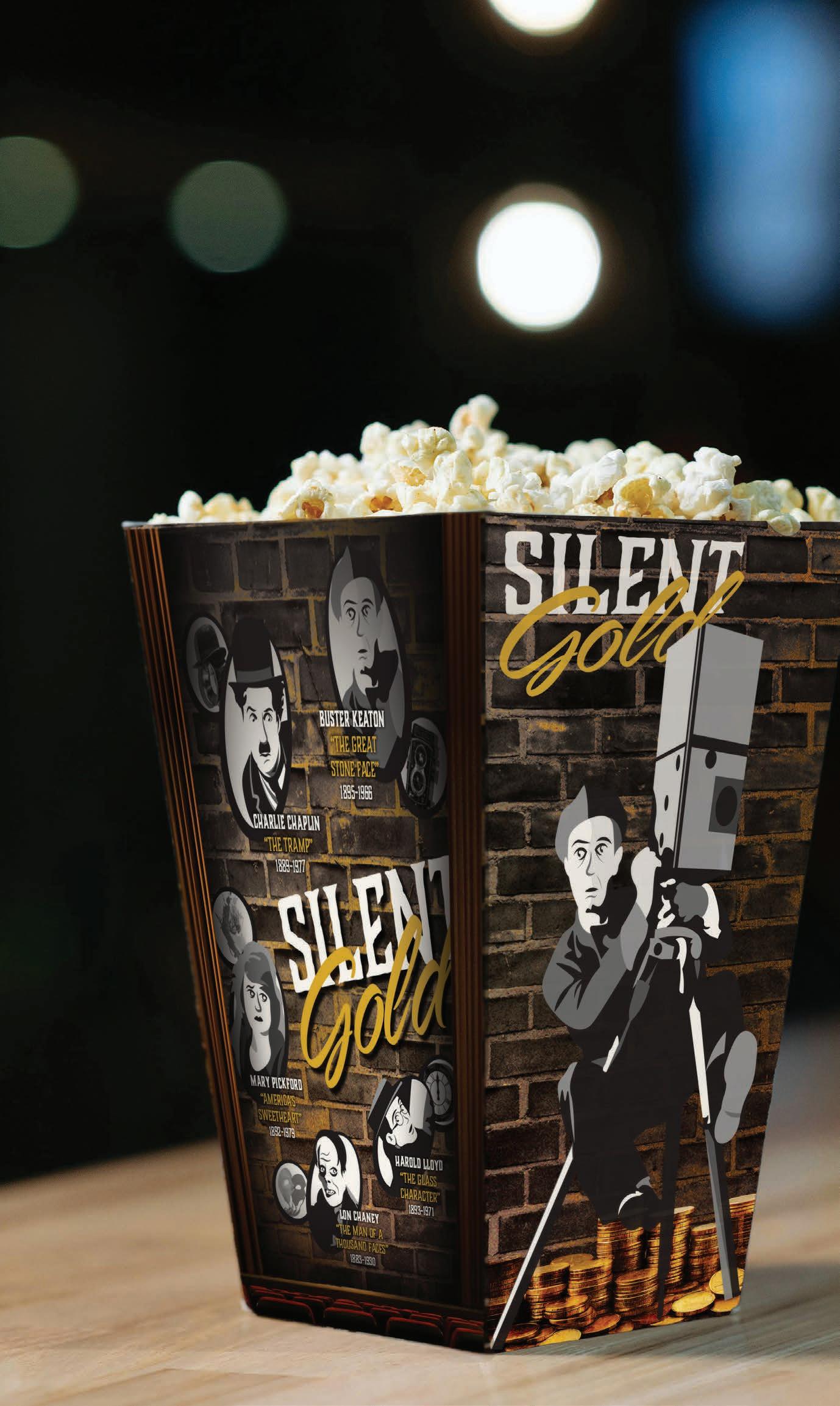 The Silent Gold DVD collection brings together the stars of yesteryear and showcases them in a new and improved format. Included in the Silent Gold DVD collection are five silent classics, featuring the icons of cinema’s early years. Buster Keaton, Charlie Chaplin, Harold Lloyd, Mary Pickford, and Lon Chaney are all immortalized in this classic collection, rendered into memorable icons that are recognizable and emphasize their individual personalities while also standing strong as a cohesive set. The colors of the theme include the full spectrum—of gray, that is!—immortalizing these classic stars in their iconic black and white appearances. Contrasted against this monochromatic theme is a pop of shimmering gold, representing the priceless value of these classic films.