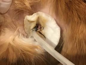 Once the pet is adequately sedated, you can place your IV catheter. We recommend placing a catheter in the hindlimb if possible to allow the family to remain at the pet’s head.
