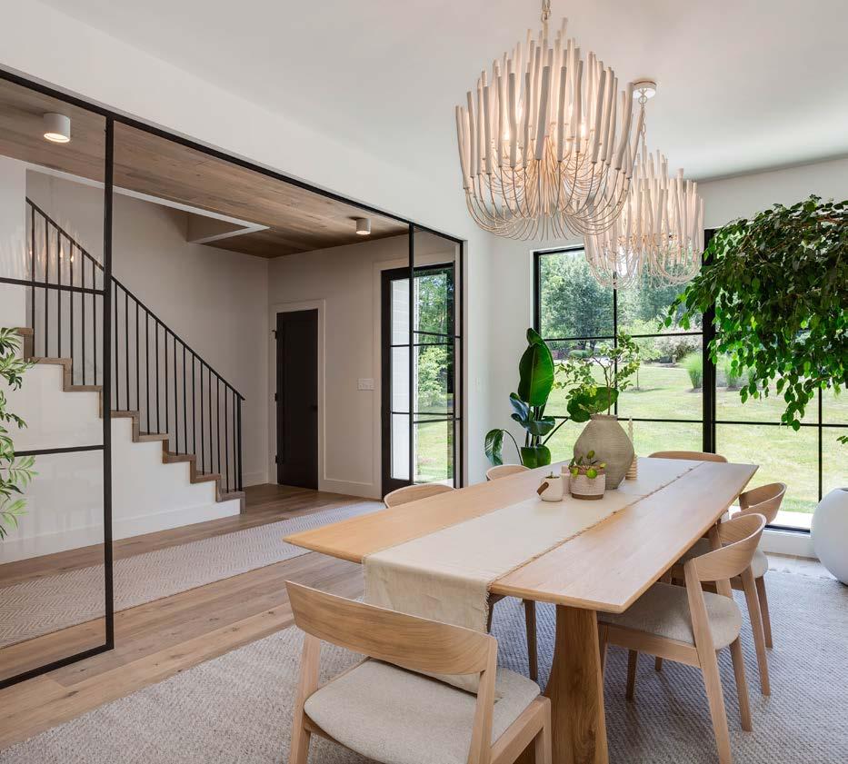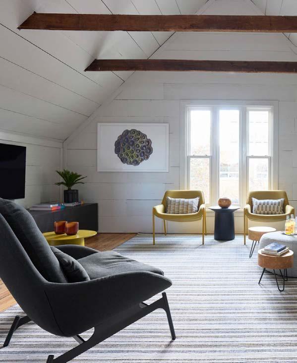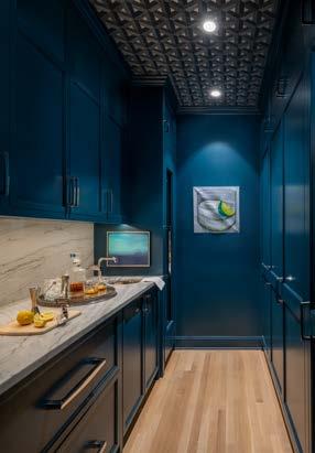 The major work was the addition of about 2,300 square feet on the house’s western side to accommodate the owners’ suite and guest suite (a living space for her mother was one of the client’s must-haves). This end of the house is virtually self-contained: a spacious southand-west-facing primary bedroom with access to the rear terrace; primary bath; his-and-hers closet/dressing rooms; an office and laundry room—as well as a workout room upstairs. The guest suite, which during construction was called “mom’s room,” has its own foyer, bath, and walk-in closet. And in case of more visitors (such as future grandchildren), there’s a separate bedroom with bath in the attic.