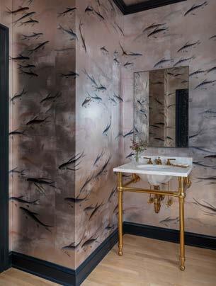 tution Kenny Ball Antiques). Many of the materials and paint colors had been selected during the renovation in consultation with the DGP team, but the client asked Ball for help in choosing furnishings, fabrics, wall coverings, and fixtures.