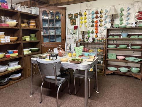“I love interior design,” says Bazemore, whose career has been as a hairstylist, “and doing this, I got to live out my fantasy.” In fact, she plans to use the downstairs business space to open a new venture: a kitchen and pantry retail boutique, stocked with both useful kitchen items and the fruits of her secondhand store forays. She also hopes to offer some limited grocery items, in a nod to the building’s history as a local grocery store.