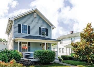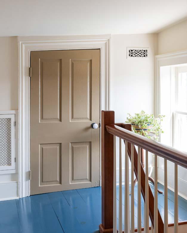 “The layout of the living space didn’t change dramatically,” notes Lane; the work was mostly taking pieces away to improve the flow and sightlines. In the front is the open living/kitchen space, with large windows facing south and west, and above this space is Pelton’s office/music room and the guest suite. The first floor hallway leads back to the master suite and a secondstory porch lined with windows so it can be opened up in the summer. Below the porch is the back entrance-cum-mudroom; Bazemore says, “I love this space— it’s so useful for storage, which we don’t have much of, and for bringing in packages and groceries” (the front entrance at the street level has no parking, and opens right to the stairs). The rear extension added about 436 square feet.