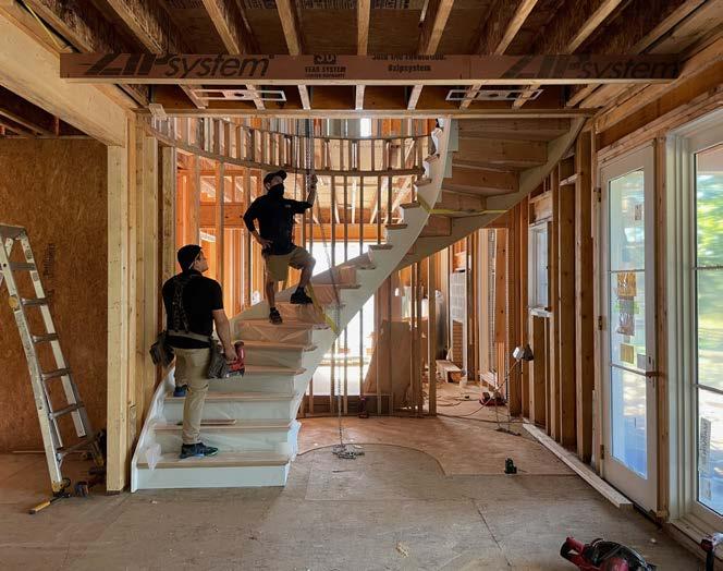 The speed was the result of careful planning during framing, which ensured a tight fit once the stair arrived on-site. Voight notes a final, practical takeaway from the experience: “One key thing to remember is that these are sizeable pieces to bring into a house, so there needs to be a door large enough to allow it in!”—CH