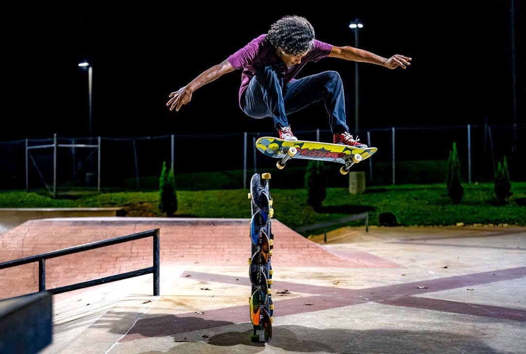 Charlottesville skaters went deck to deck on October 18 during a length and height tournament at the Charlottesville Skate Park. Competitors tested their speed and lift for prizes and bragging rights, while spectators enjoyed free food and a brisk fall evening. Mohamed Nour claimed the top spot, clearing eight decks with a high Ollie to set a new event record and take home a shirt and hat from Small Size Productions, a side project from event co-organizer Edgar Batcheller. Batcheller says the competition, which he co-created with Dan Zimmerman, was meant to create “a stronger community through skateboarding and creativity. Skateboarding provides kids, teens, and adults a great outlet and Charlottesville is a great community for it.”